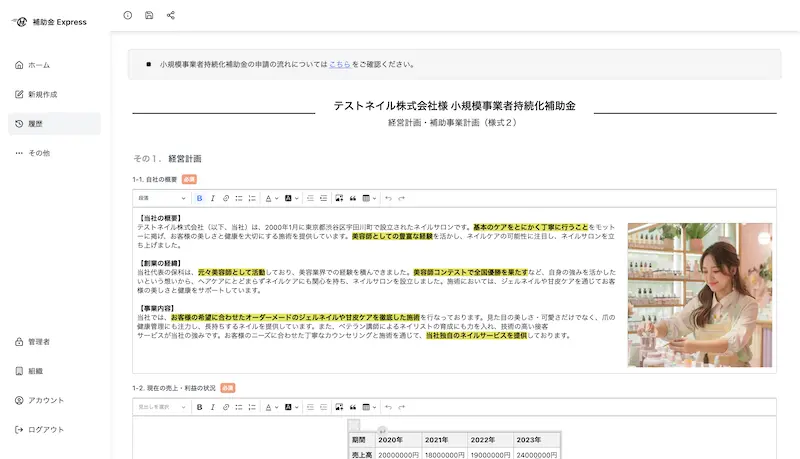 補助金Expressは申請書類の執筆・共有・提出を大幅に効率化し、